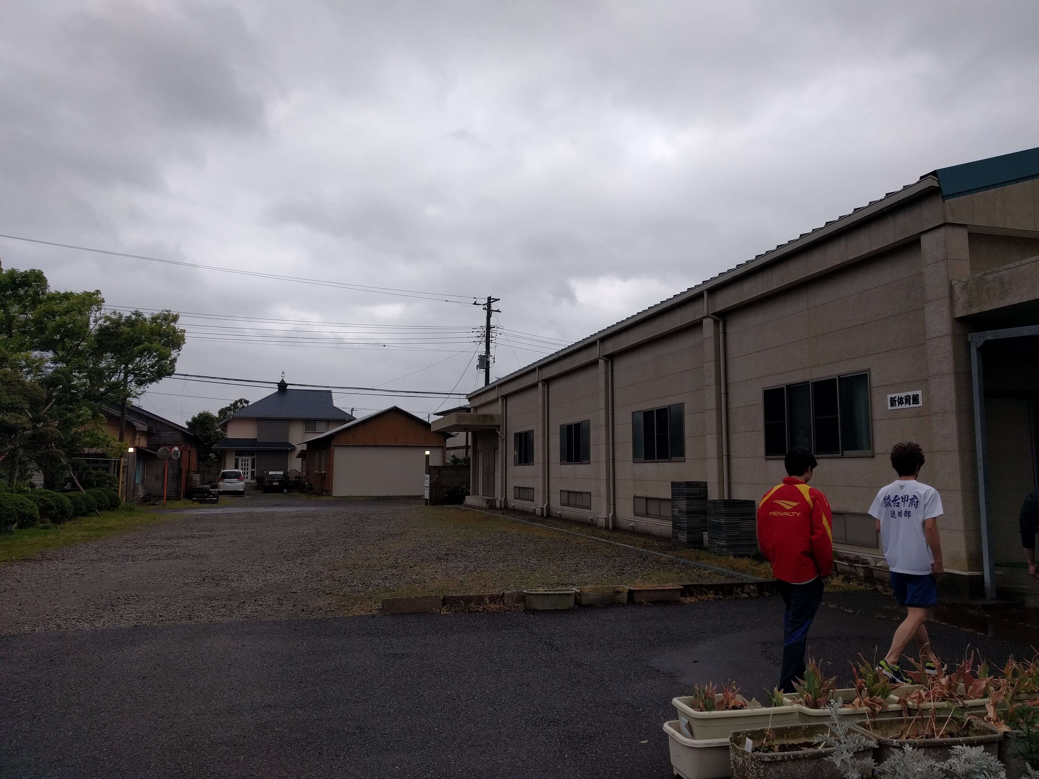 2日目の朝はあいにくの雨で体育館でのストレッチとなりました。