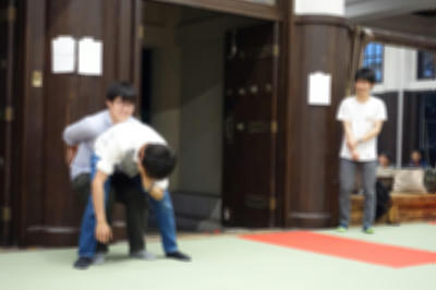 専修大学は交差持ち、本学は両手持ち、東京大学は片手持ちからの技を行いました。